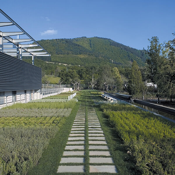 Nel 2001 lanciamo il progetto di costruzione della nuova cantina: vogliamo uno spazio unico nel suo genere, che sappia coniugare il nostro gusto per la tradizione e la nostra vocazione contemporanea, e che contempli spazi adeguati per una vinificazione di eccellenza ma anche per il racconto della storia dell’azienda e del suo territorio.