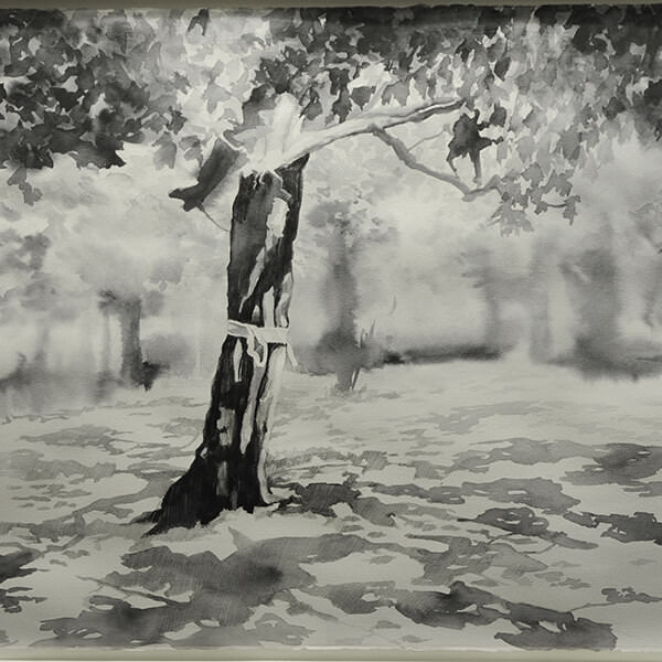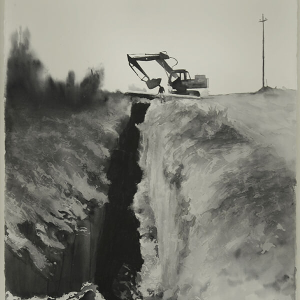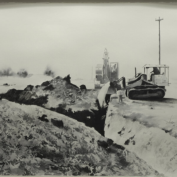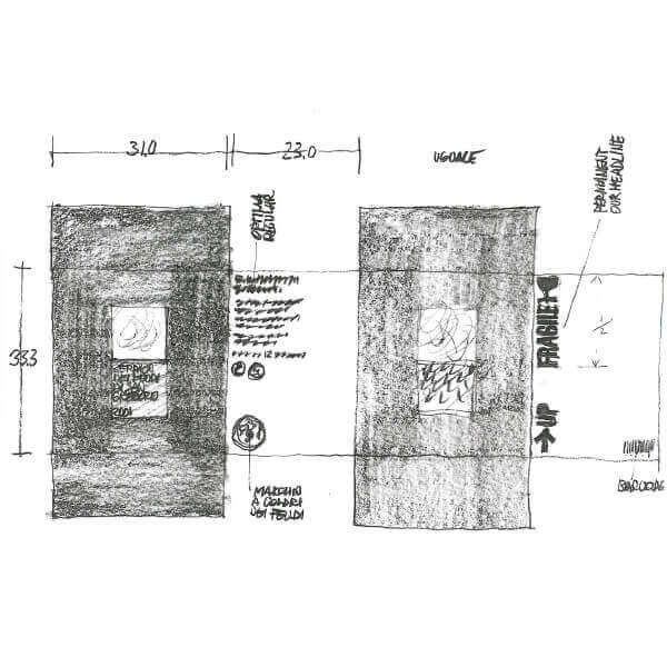 I sei acquerelli, dipinti con un gioco di chiaro scuro, raccontano l’edificazione della nuova cantina, dagli scavi alla costruzione, con il passare delle stagioni che hanno accompagnato il progetto, e mostrano la struttura originaria prima dell’intervento architettonico di Hikaru Mori e Maurizio Zito.