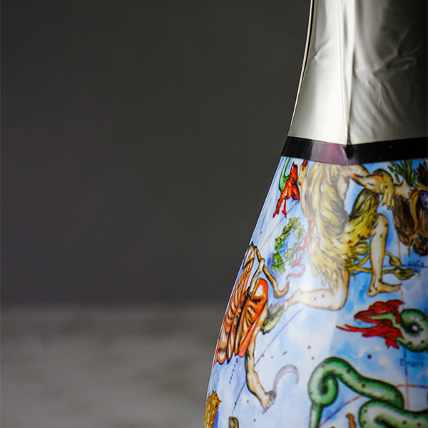 La bottiglia ispirata all’opera “Constellations” è un’etichetta d’artista da collezionare come un’opera d’arte,il cui ricavato sarà interamente devoluto alla Fondazione di Comunità San Gennaro guidata da Padre Antonio Loffredo e al suo progetto di sviluppo sociale per il rione Sanità di Napoli.